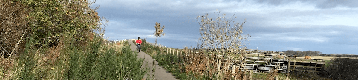 This morning we handed over one of the crowd-funded copies of Designing for Cycle Traffic to the Aberdeenshire Council. We met with Councillor Martin Ford at the start of the new cycle track at Kintore beside the A96. The new path goes all the way to Port Elphinstone and there are plans to extend it in the other direction to Blackburn.