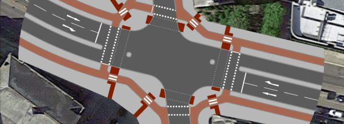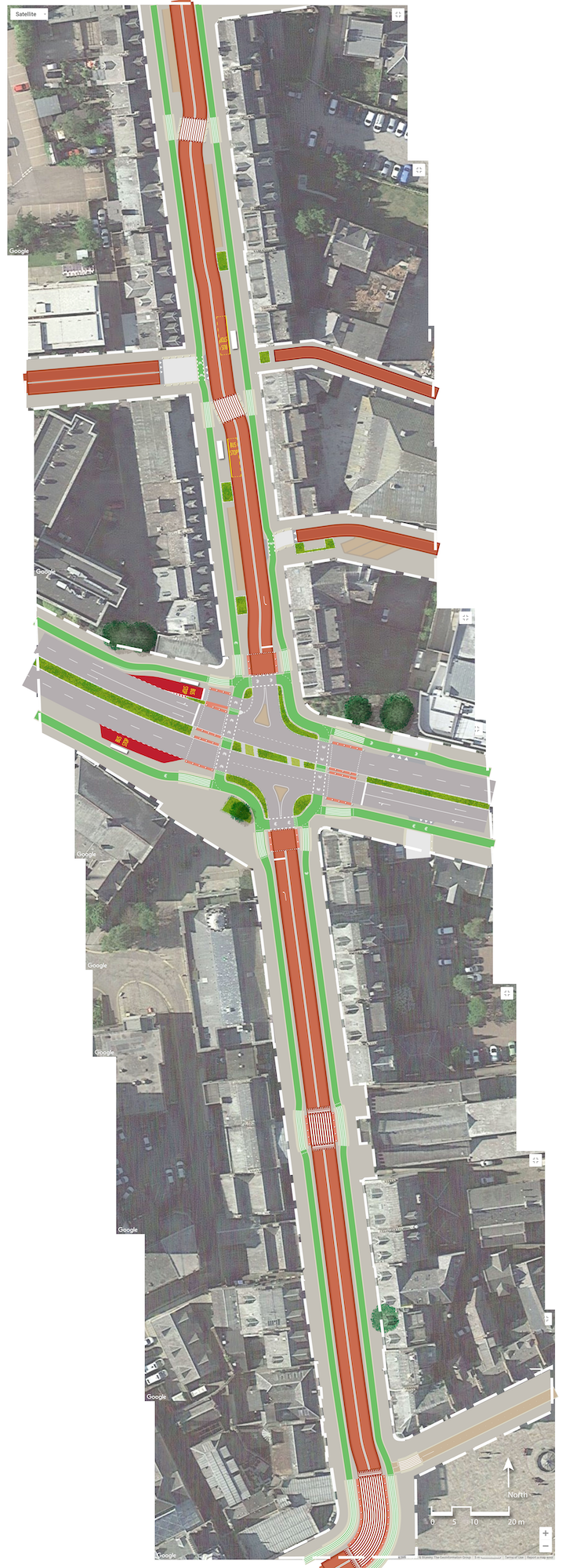 Scottish Cycling by Design specifies “that cycle routes are coherent and do not require cyclists to dismount to cross footways and other barriers or take unnecessary detours.“