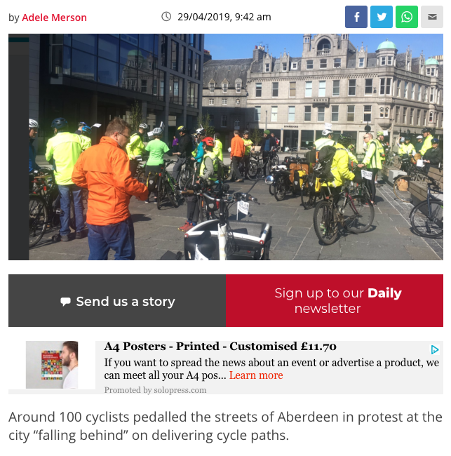 Was it a success? In terms of enjoyment value, definitely! Will we see positive action from the local authority? If I didn’t think it would help then I wouldn’t bother and I would give up all hope. I do think these events are important and collectively, with other campaigns, they will help to steer direction towards an Aberdeen that is a safe place to cycle for everyone, adults and children alike.